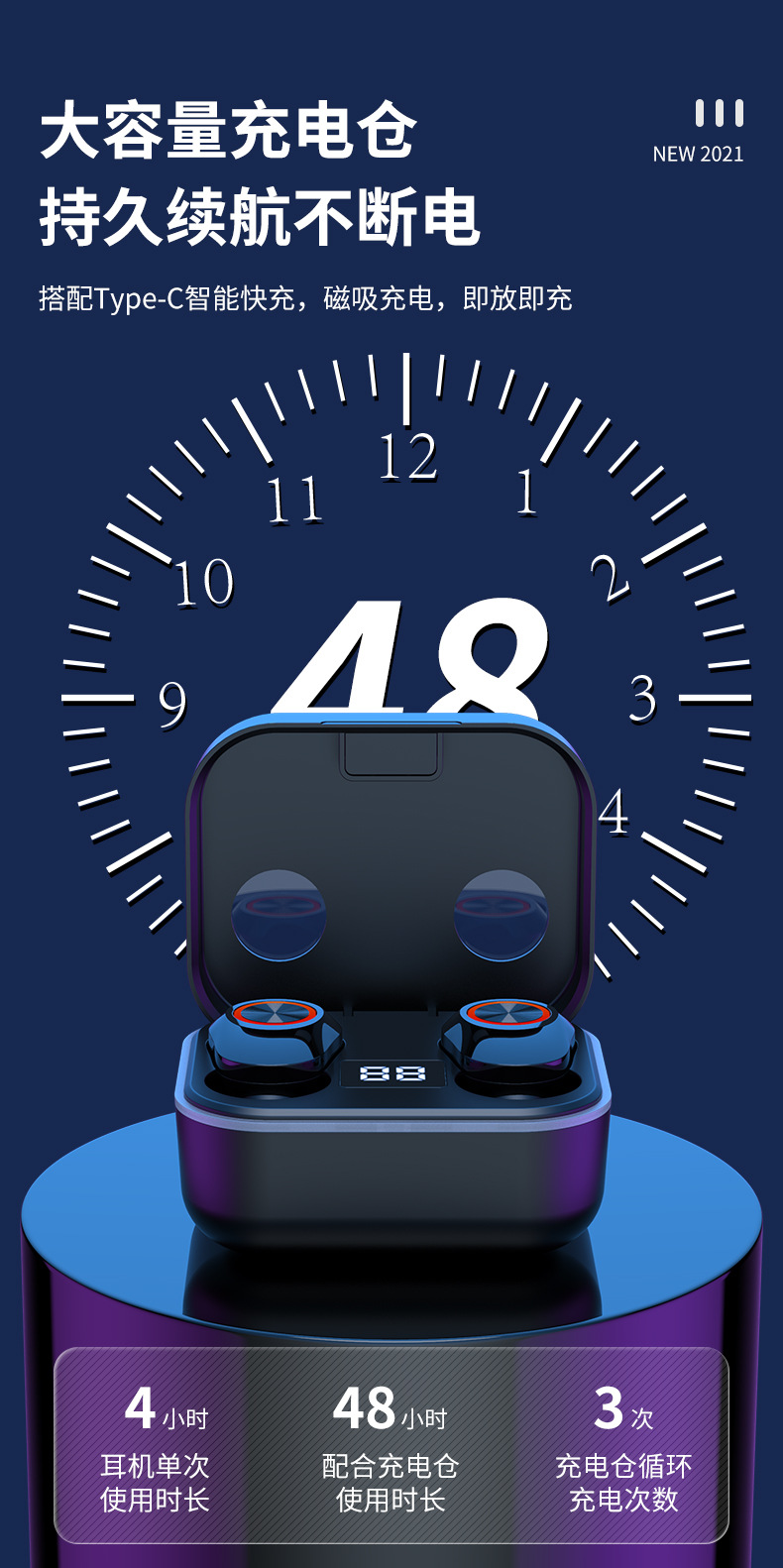 Features: Power display, call function, voice control, support music, multi - point connection