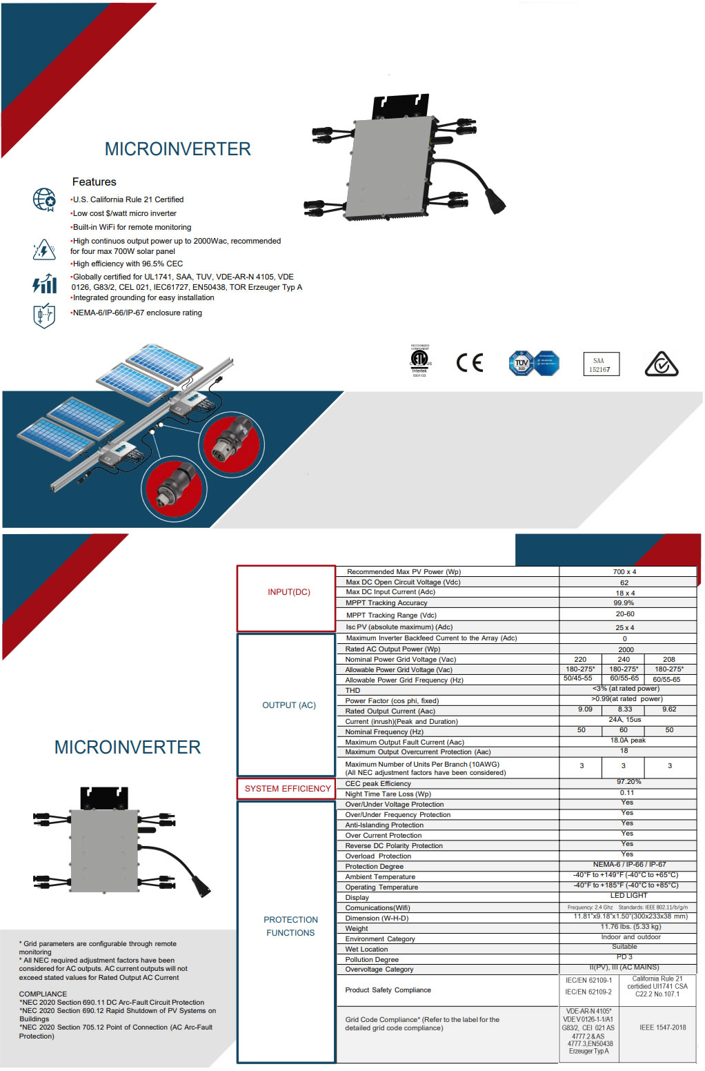 •Globally certified for UL1741, SAA, TUV, VDE-AR-N 4105, VDE